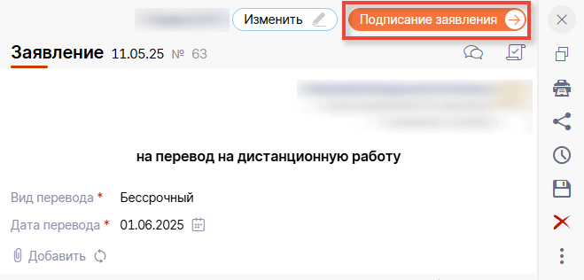 Сформируется заявление, которое необходимо подписать. Для этого нажмите кнопку "Подписание заявления" - "Подписать"