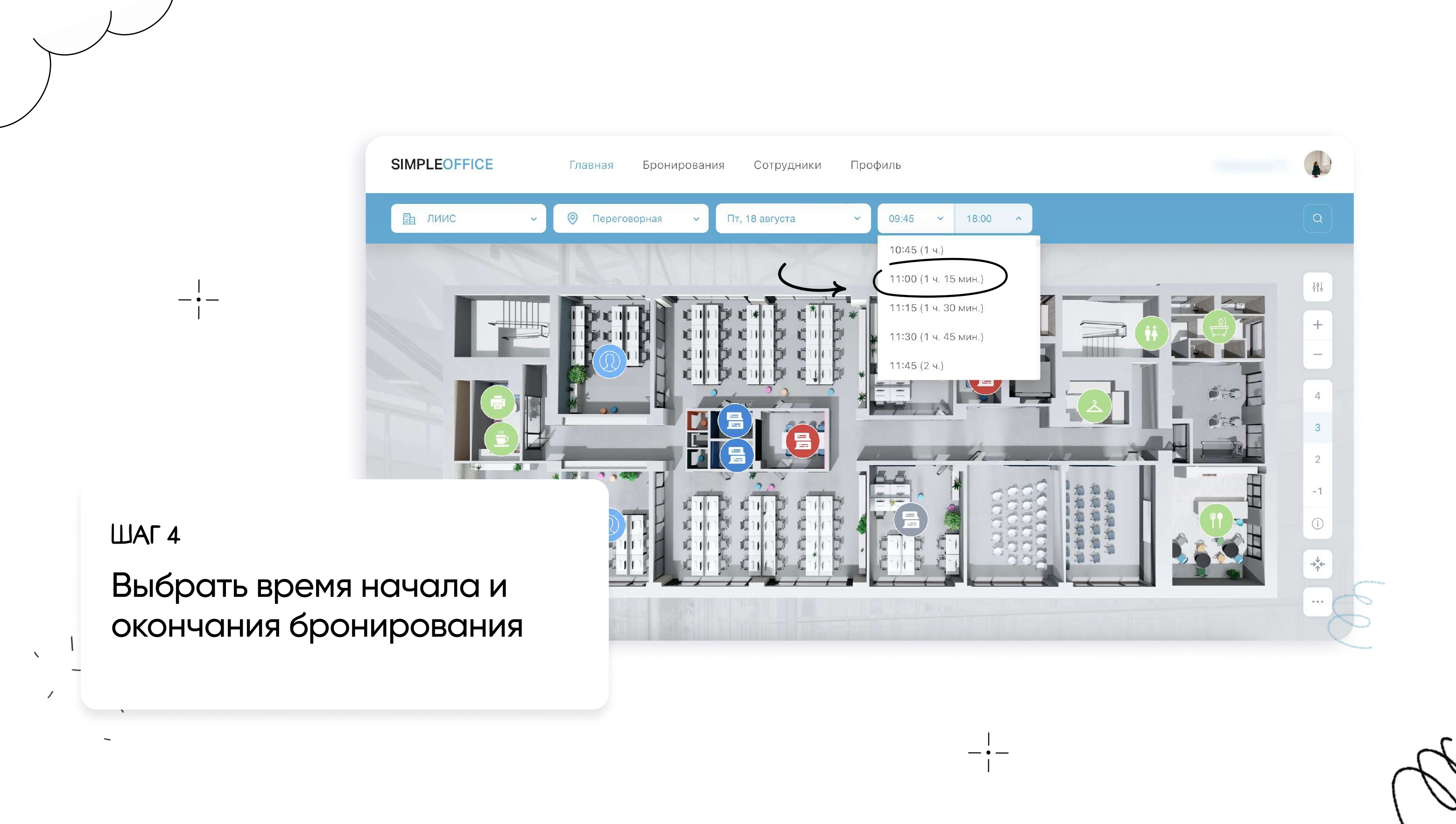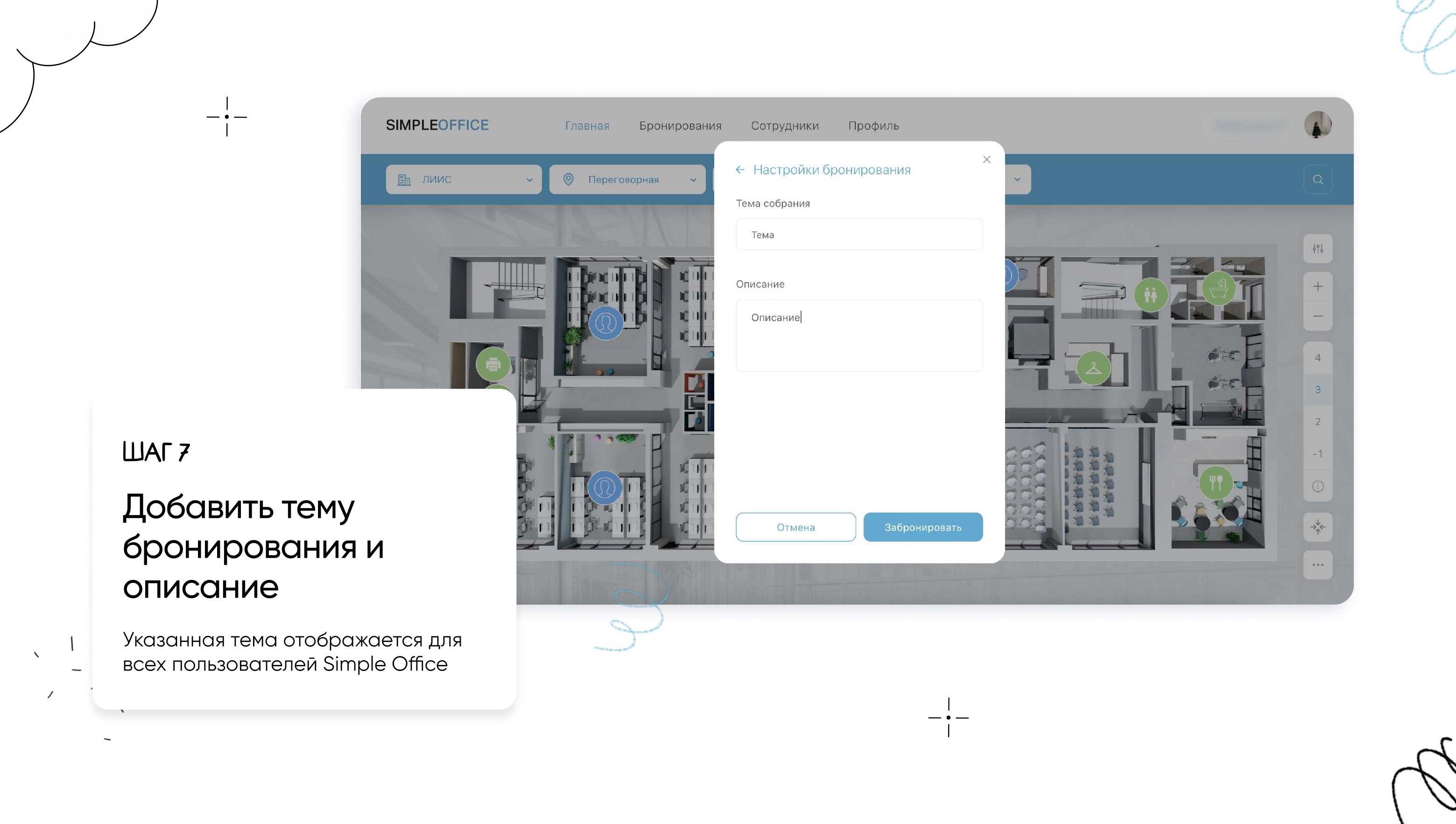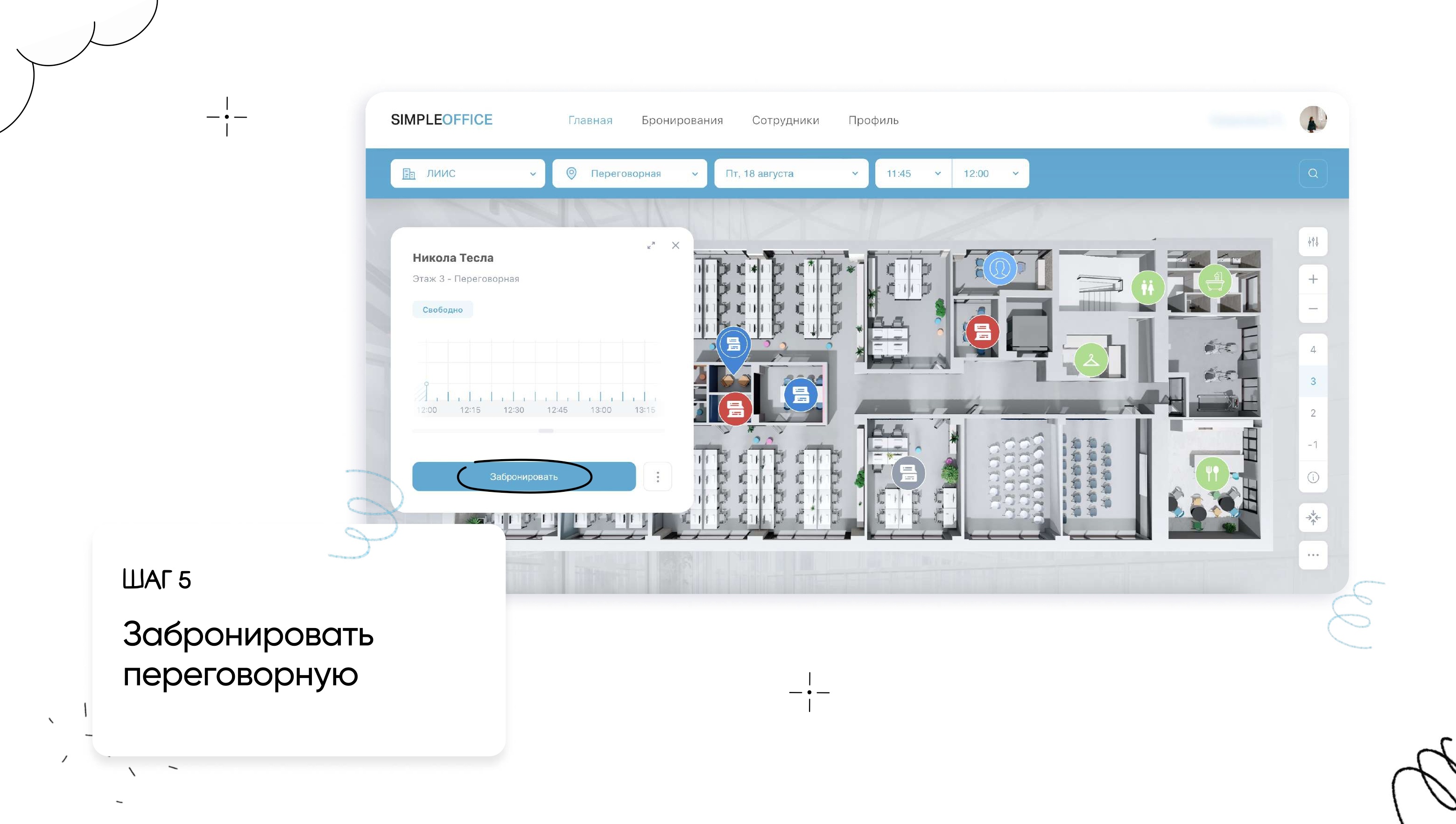 Бронирование переговорной через веб-сайт