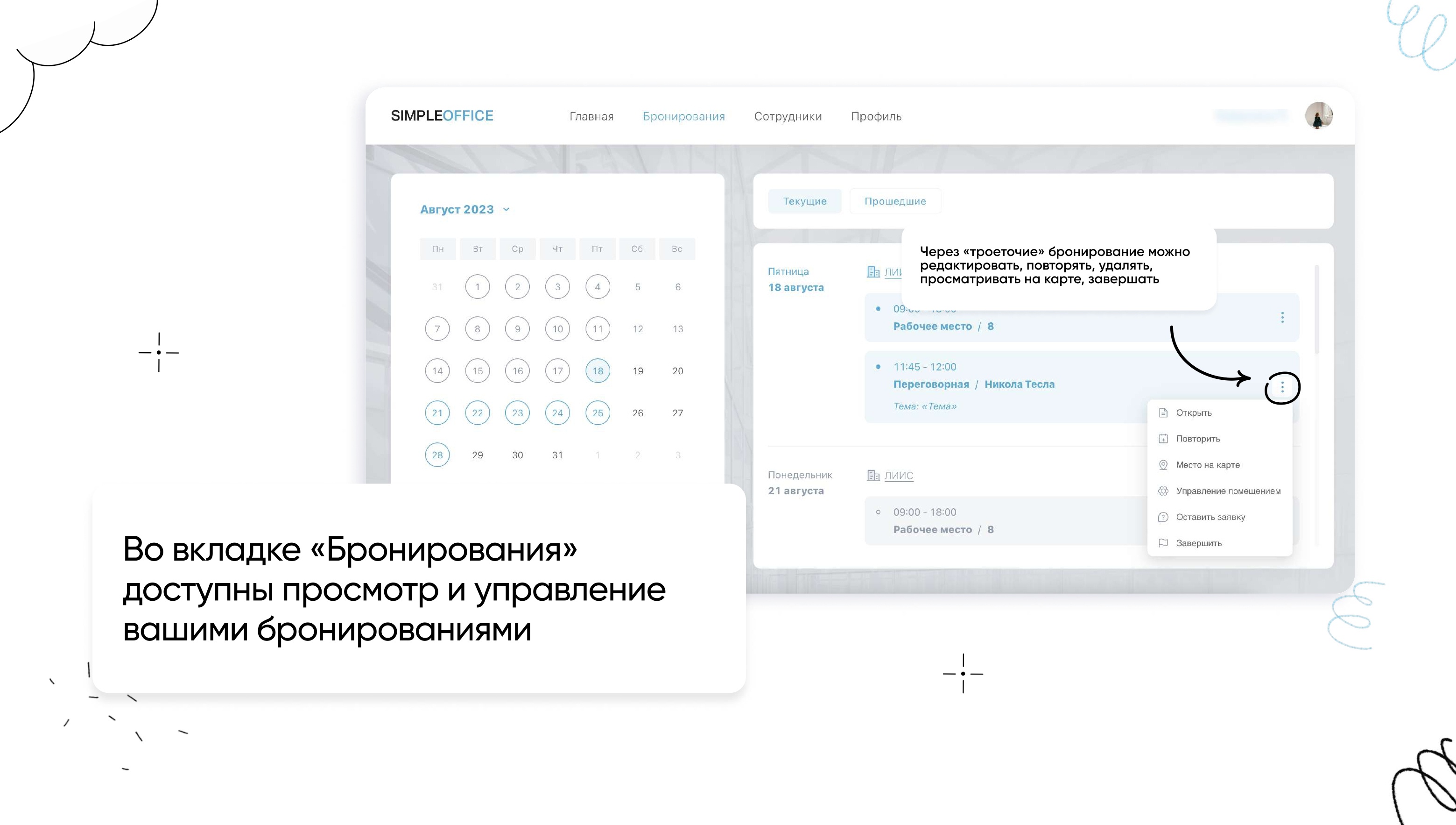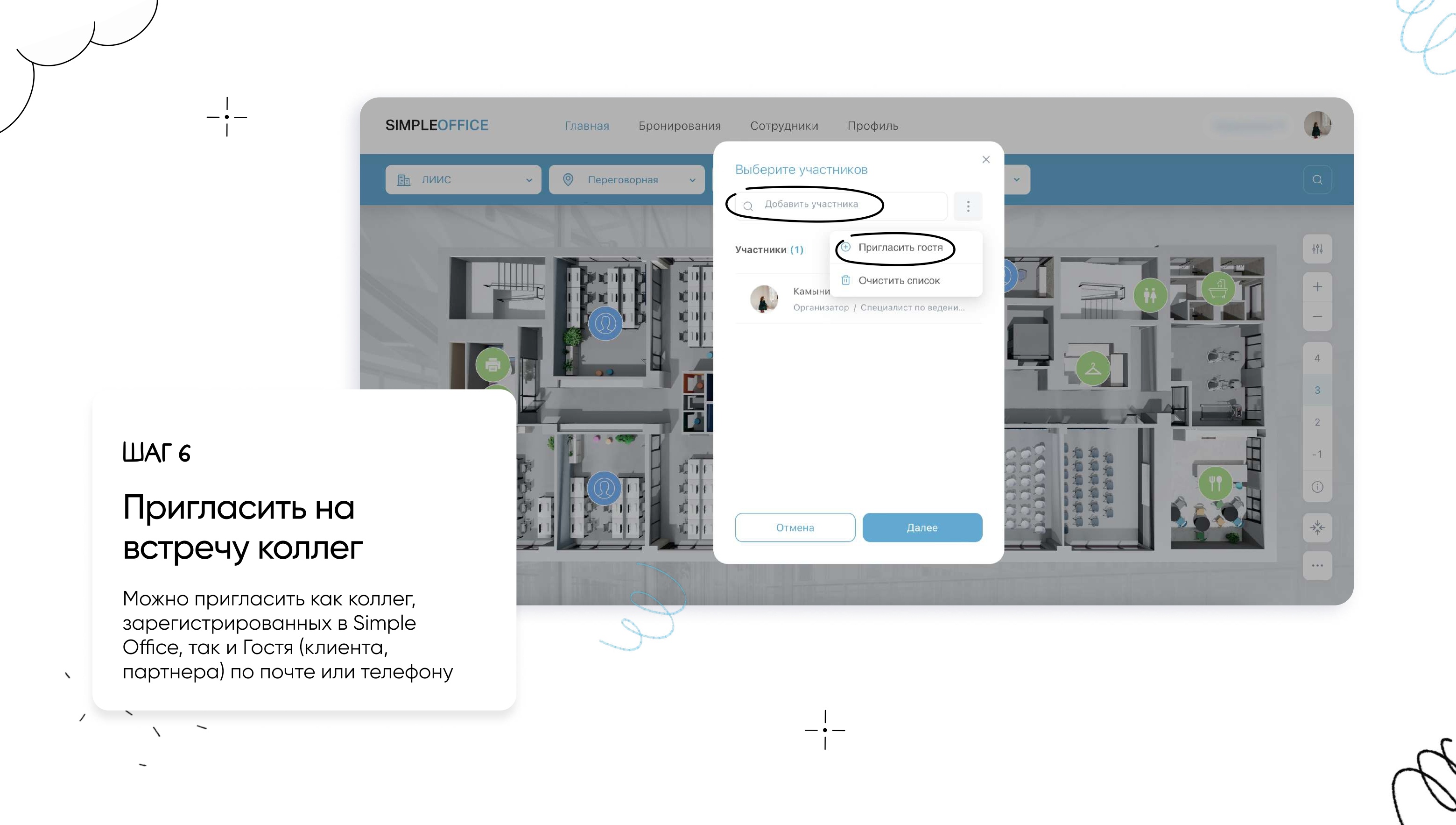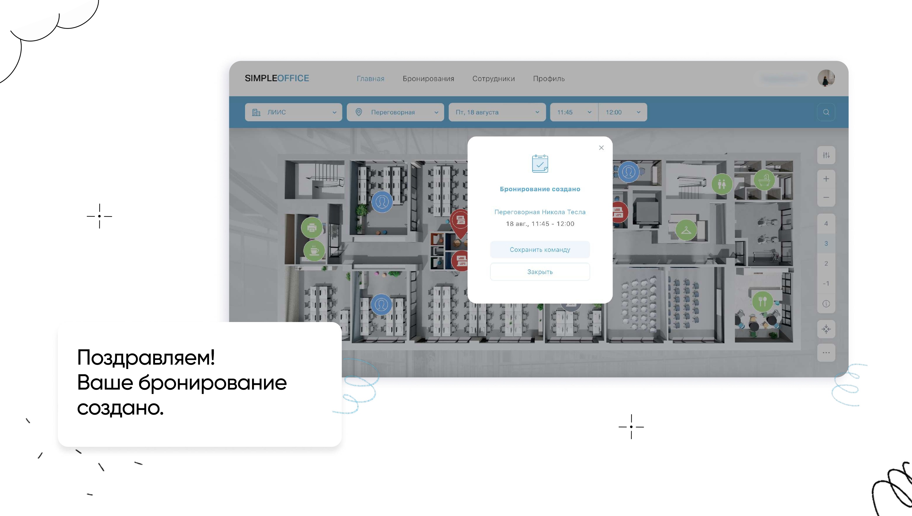 Бронирование переговорной через веб-сайт