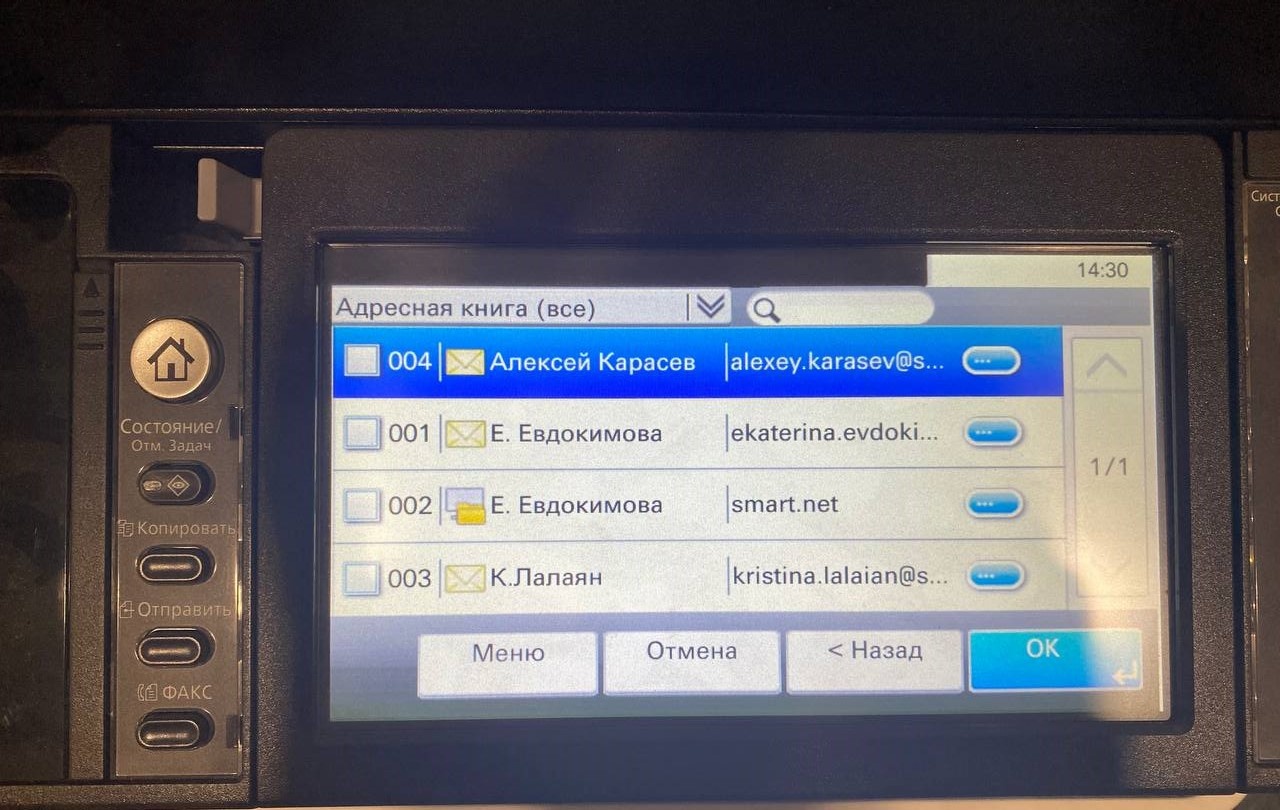 1) Подходим к принтеру  который настроен для сканирования на почту